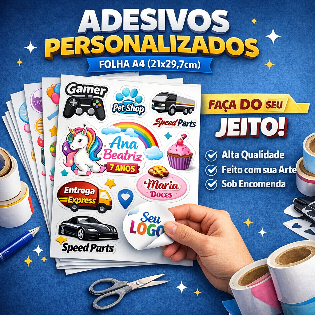 Folha de adesivos personalizados, em tamanho A4.